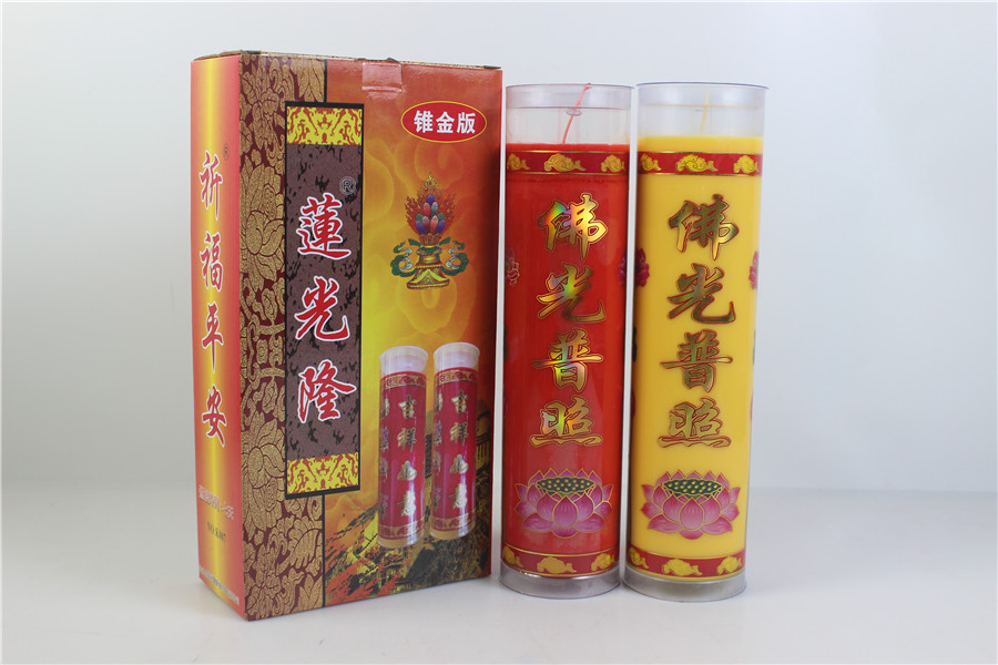 产品名称:锥金七天佛光酥油斗烛(红黄) |